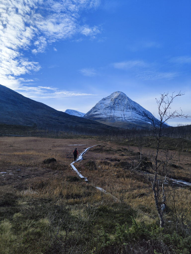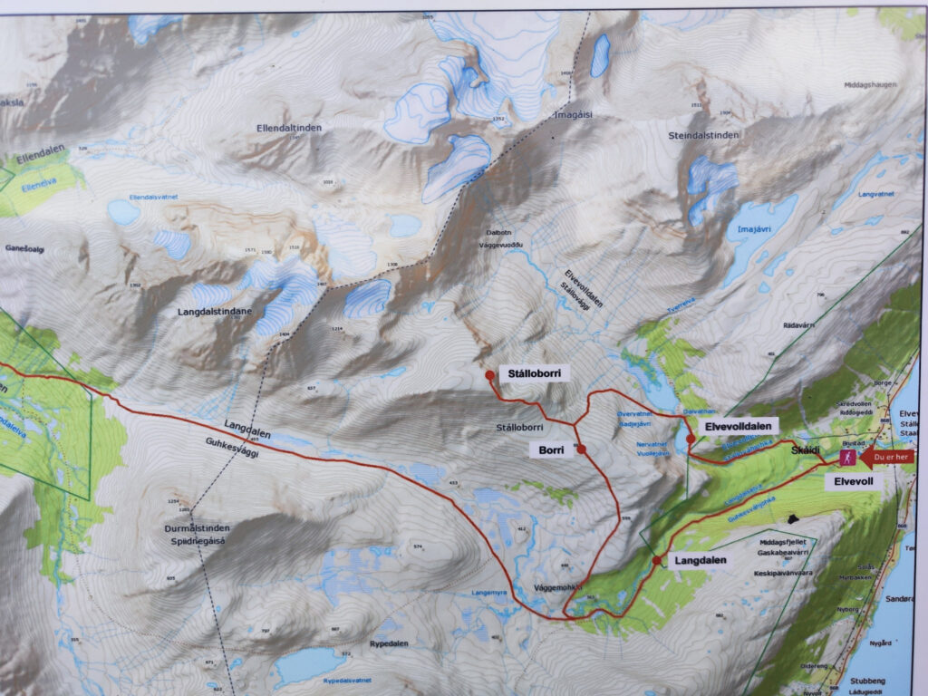 Viimeisen vuoden aikana olen vieraillut Skibotnista 40km päässä olevassa Elvevollissa useita kertoja. Elvevolliin ajetaan Hattengin ja Saukkosen kylien läpi Lyngen-vuonon pohjukan ympäri. Vanhan koulun, Vestersidasenterin pihasta lähtee vuorille reitti, joka on helppokulkuinen, joskin nousuihin saa varautua.